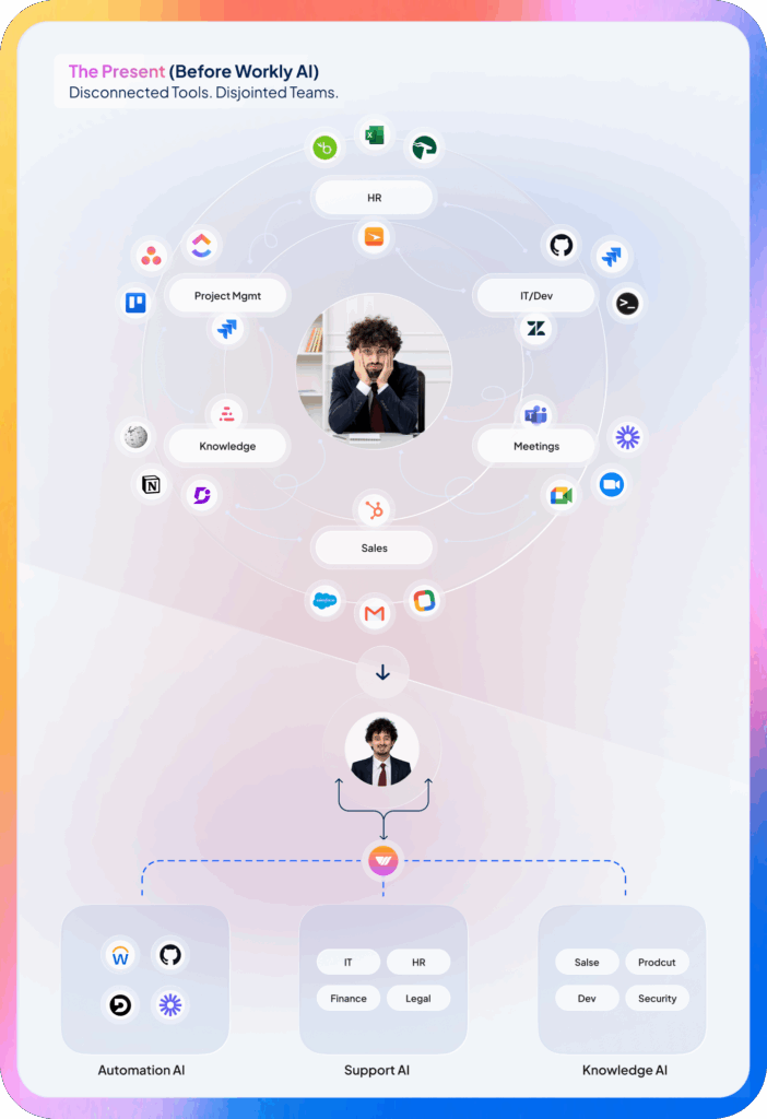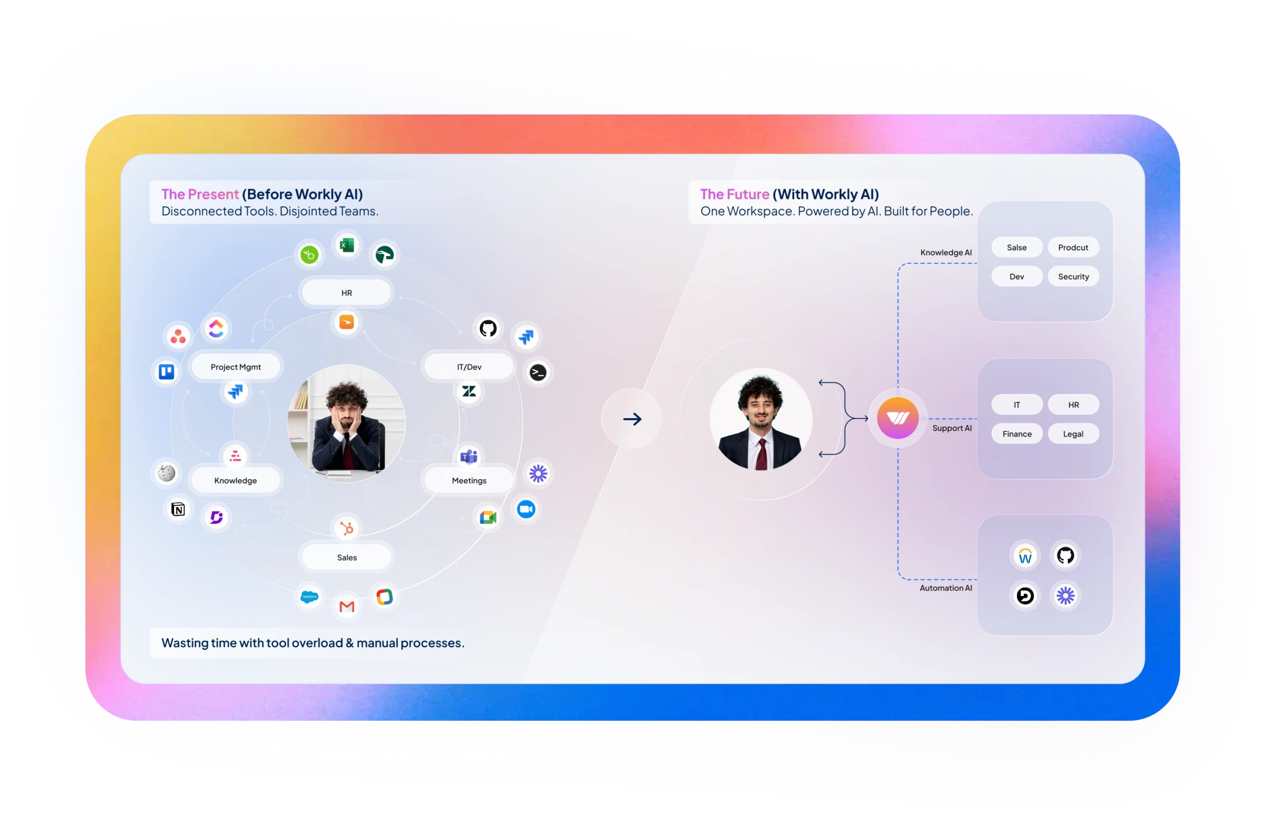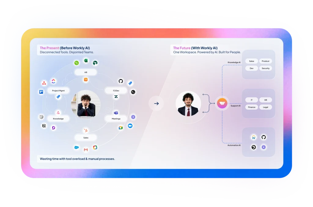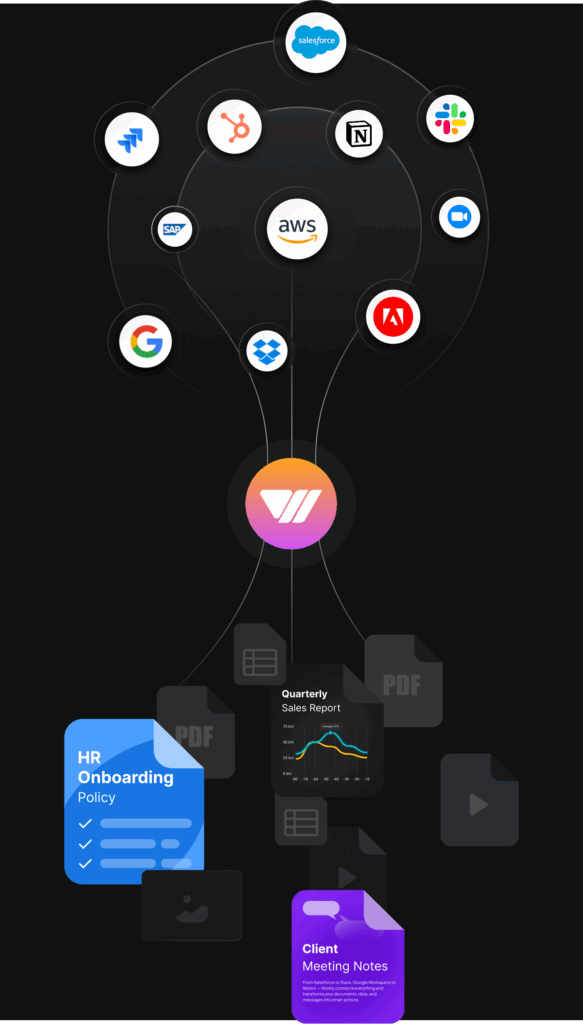 From Salesforce to Slack, Google Workspace to Notion — Workly connects everything and transforms your documents, data, and messages into smart actions.
