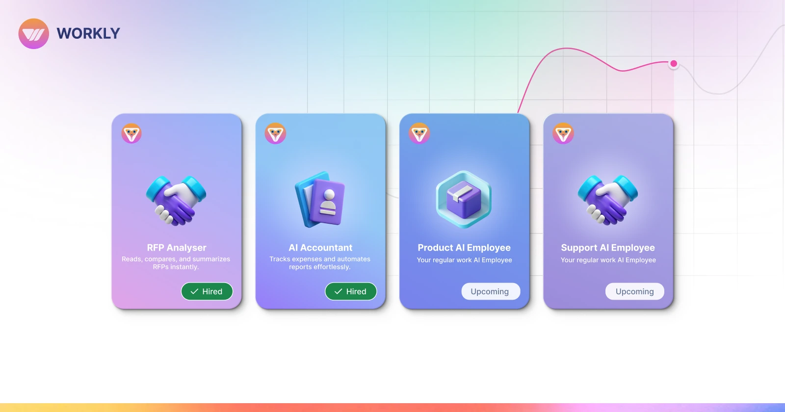 By introducing AI Employees into everyday workflows, Workly creates an environment where work runs smoothly in the background and teams can focus on what truly matters.
