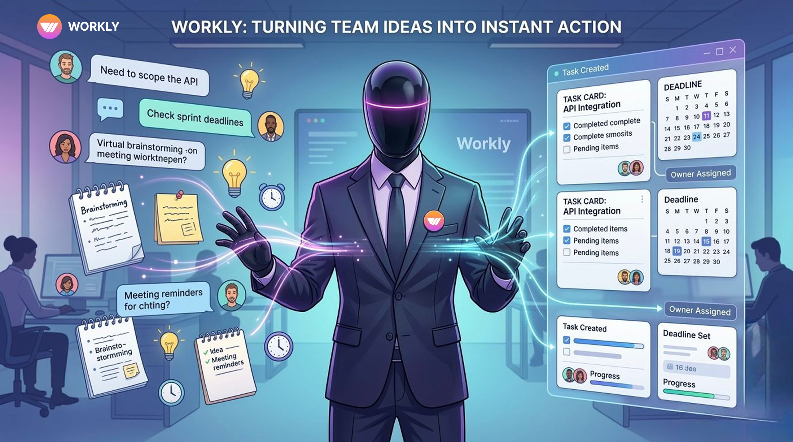 Workly adds AI helpers that turn discussions into trackable work, rather than just saving messages.