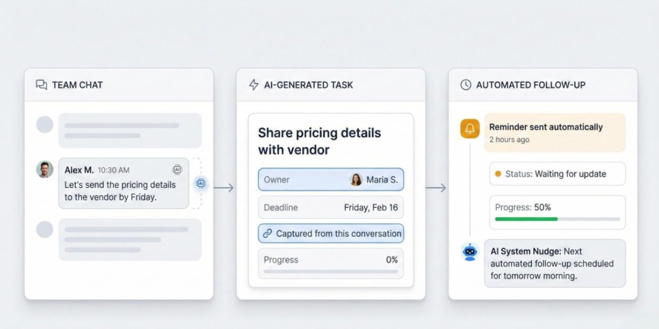 Instead of focusing only on task creation, it pays attention to what happens next. Follow-ups. Silence. Delays. Tasks that exist but aren’t moving.