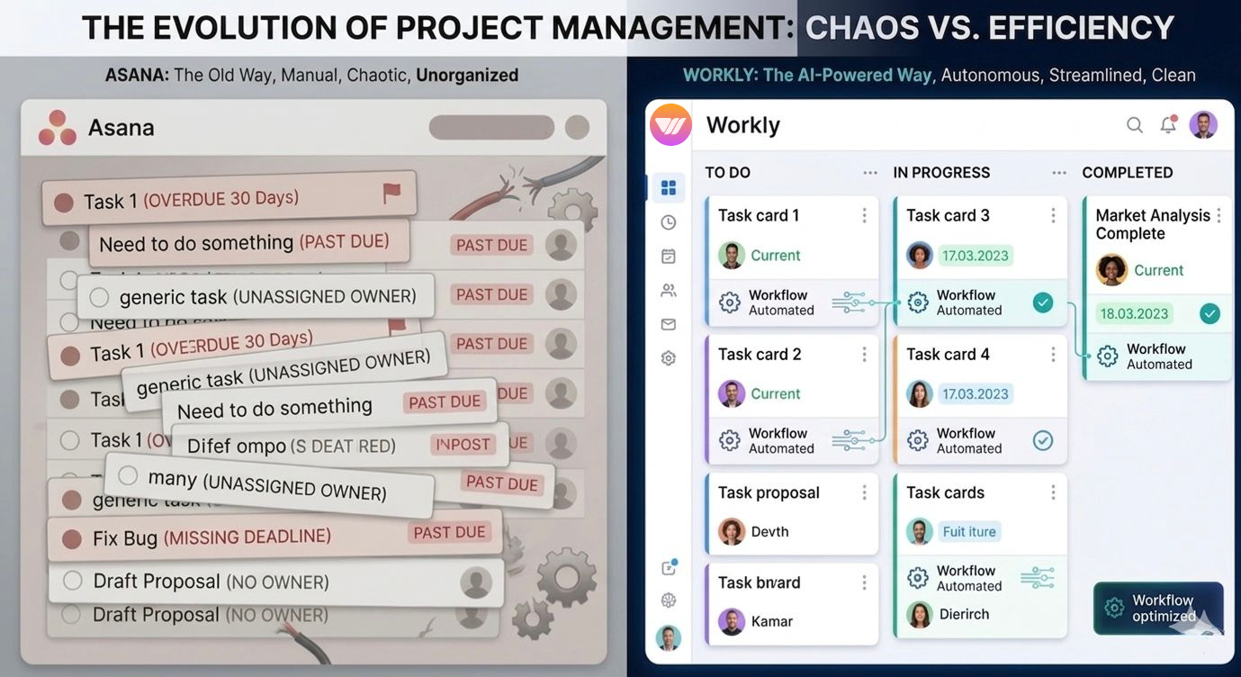 The problem is not a lack of tools, it is the overload of coordination. Asana helps teams stay organized, but Workly helps them move faster by turning conversations into action and minimizing manual follow-ups. It is the difference between tracking progress and driving it.