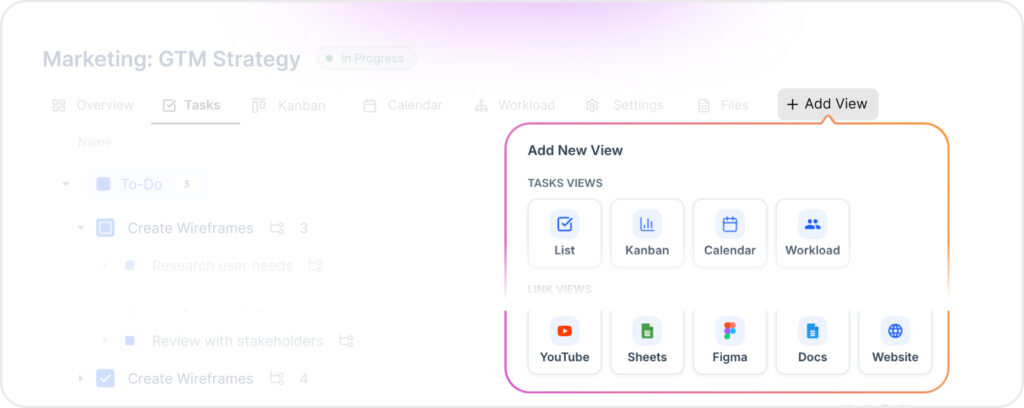 Switch between List, Kanban, Calendar, and Workload while everything stays synced and up to date.
