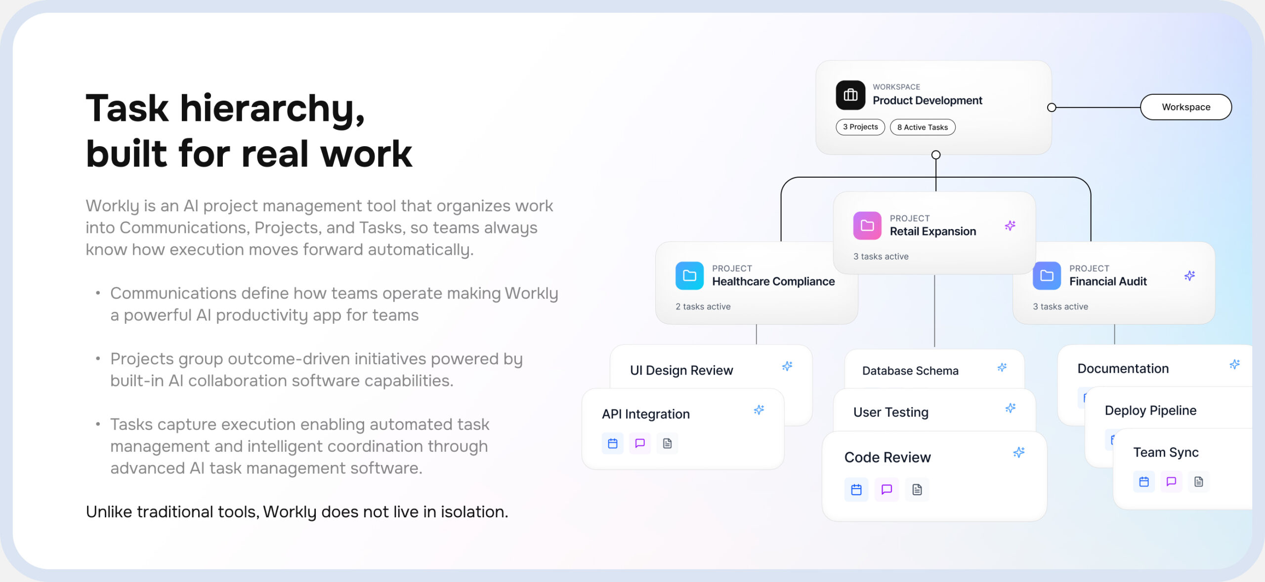 From meeting notes to Tasks, Workly AI collaboration software connects everything in one place.