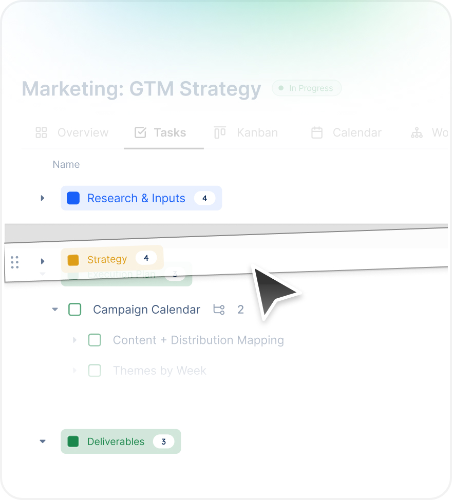 Edit, move, or restructure tasks instantly — without breaking ownership, deadlines, or dependencies.